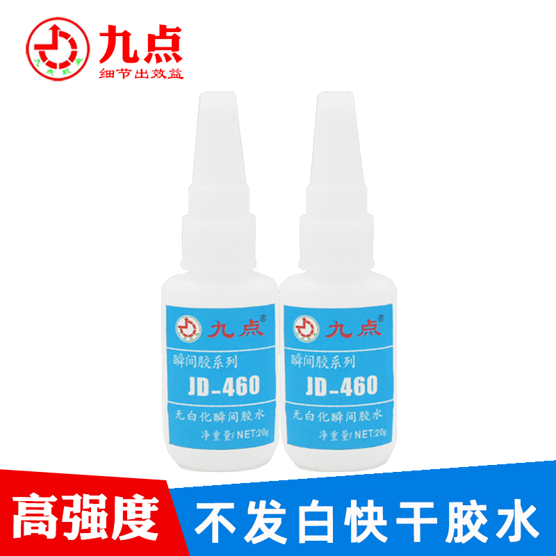 九點膠業的這款無白化瞬間膠水可以滿足所有客戶的需求,具有高性能、低粘度、低氣味、無白化、耐濕性等性能優異,顏色是無色透明液體的,不會影響到物品的美觀。