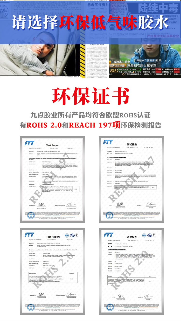 九點環(huán)保膠水適用于多種材料表面粘接效果更快、更明顯