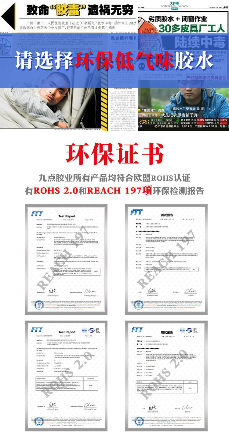 九點環(huán)保膠水適用于多種材料表面粘接效果更快、更明顯