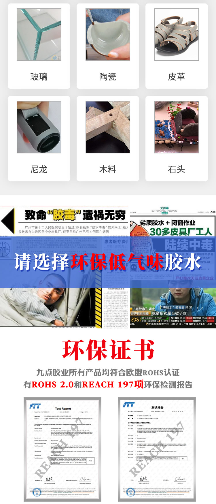 九點(diǎn)環(huán)保膠水適用于多種材料表面粘接效果更快、更明顯