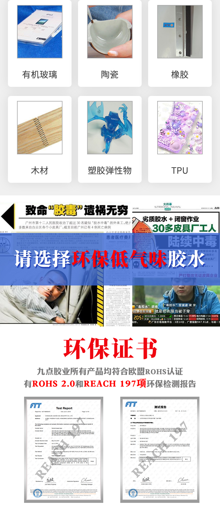 九點環保膠水適用于多種材料表面粘接效果更快、更明顯